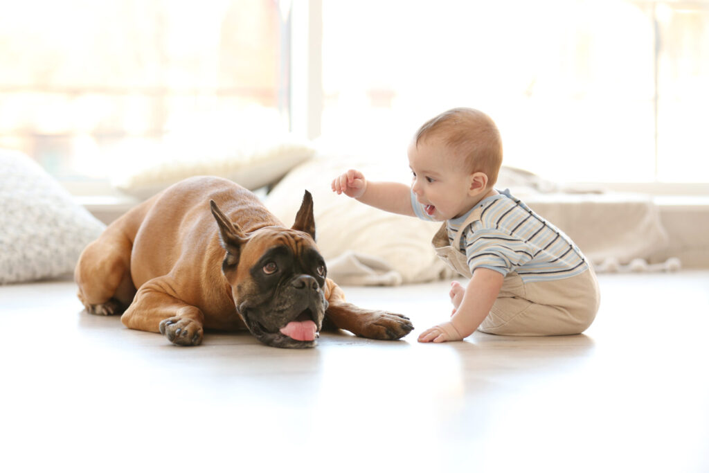 Boxers are known for their gentle demeanor around children when properly